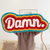 Snarzy brings you our tufted multicolored “Damn” rug. The rug is made from high-quality yarn and polyester, making it soft and comfortable underfoot. It features the word “damn” in a stylized font, and it is perfect for adding a touch of personality to any room.