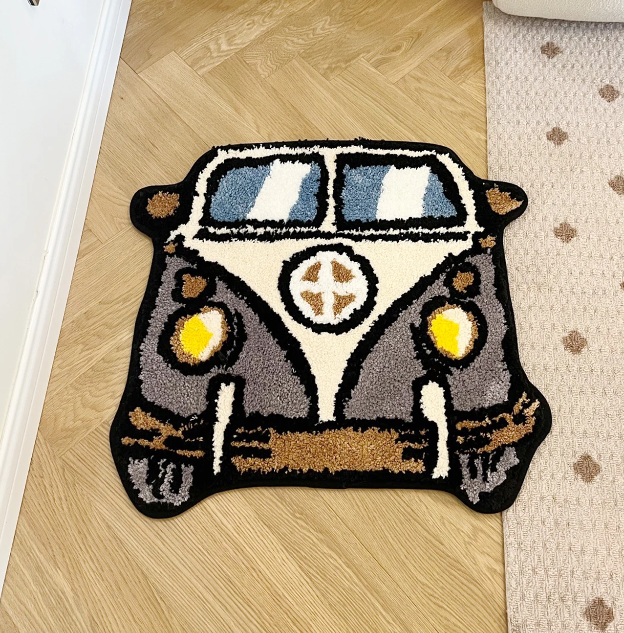 Snarzy brings you our tufted hippie van rug. This rug is made from high-quality yarn and polyester, making it soft and comfortable underfoot. It’s design is inspired by the classic VW Van which is great for fellow VW lovers and adds some nostalgia and fun to your space.