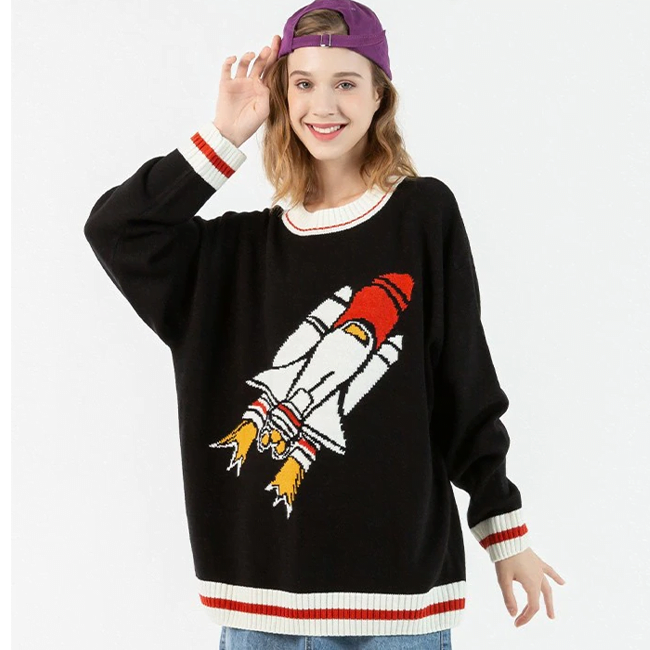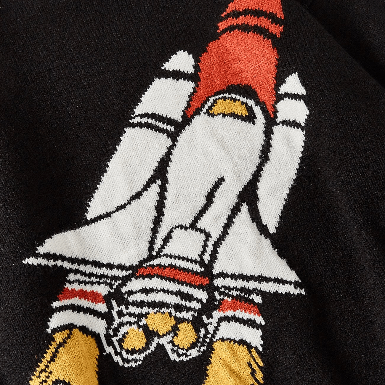 • Snarzy brings you this fun and expressive vintage rocket knitted sweater.