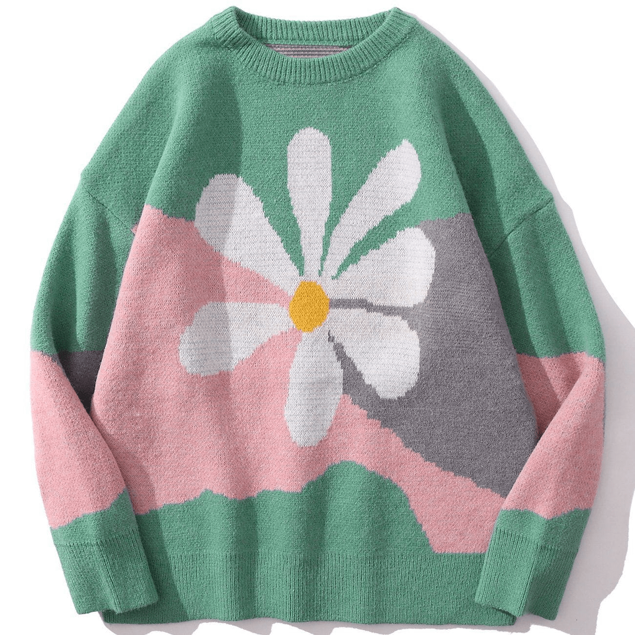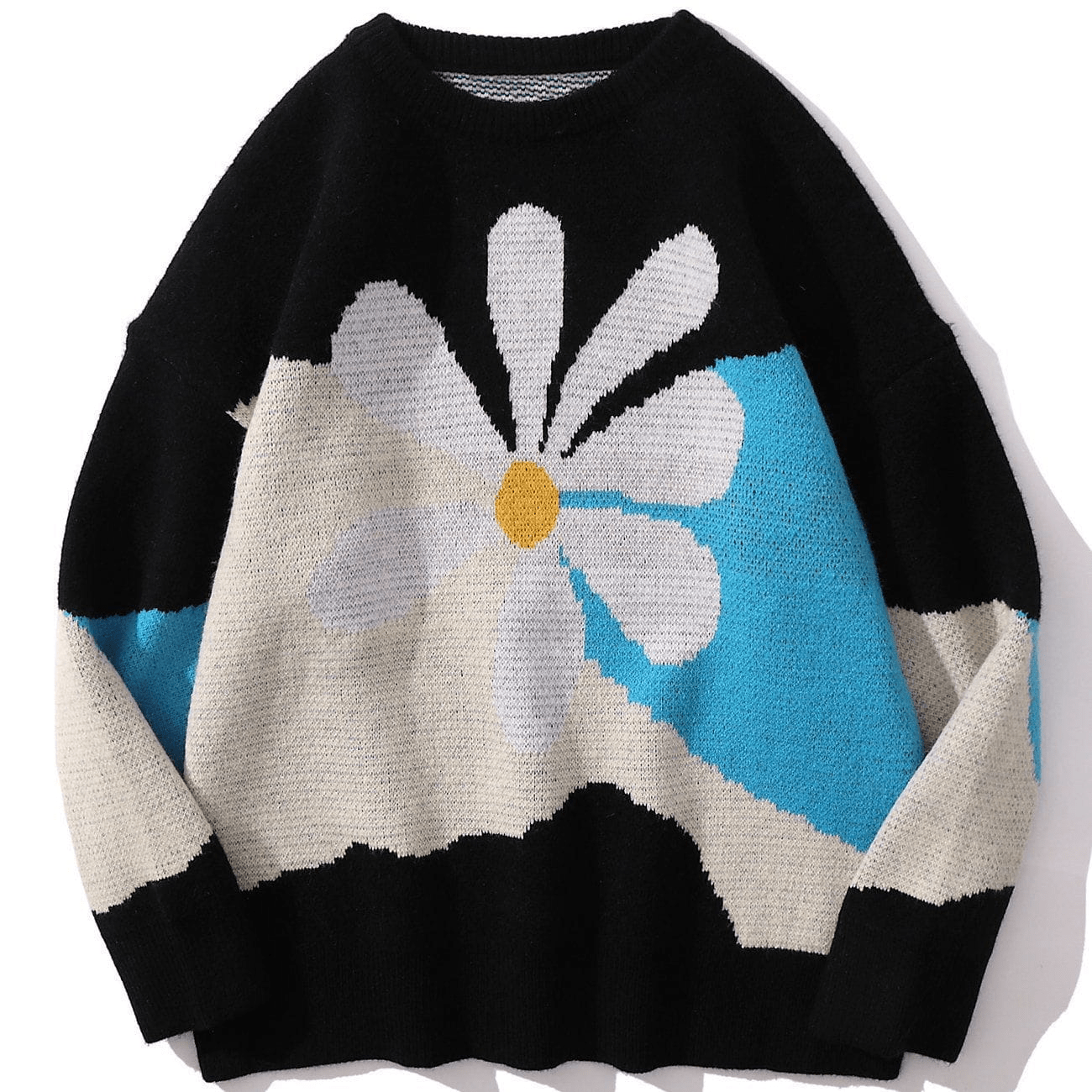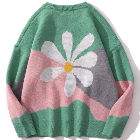 • Snarzy brings you this fun and expressive all-over pattern with a daisy knitted sweater.